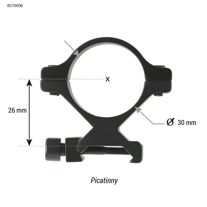 Conçu pour le montage de lunette de tir ou dont le corps fait 30 mm sur un rail compatible de type Weaver ou PicatinnyColliers 30mm montage medium d’une hauteur de 26,3mm entre le haut du rail et l’axe de l’optique. Convient généralement pour les optique d’un objectif maximal de 50mm