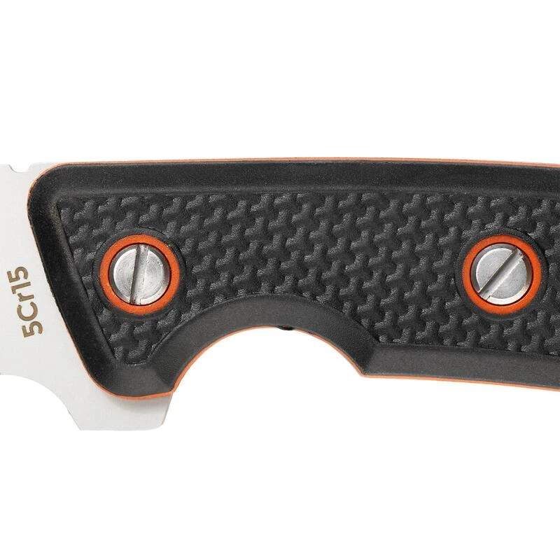Conçu pour toutes les pratiques de chasse et convient pour le bushcraftCouteau à lame fixe de 9cm en acier inoxydable et résistant. Le manche en caoutchouc synthétique lui offre un excellent grip et une bonne précision de coupe. Parfait pour le traitement de la venaison.